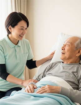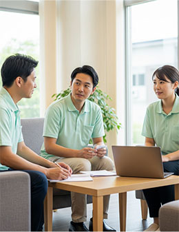 サービス業として、丁寧なごあいさつ・接遇が出来る、相手に心地よいサービスを提供する、お客様の求めていることやお困りごとを理解して適切で丁寧でスムーズな対応が出来る、それは専門職としての知識や技術を習得することと同じくらい大切である、とナイスケアリングは考えます。